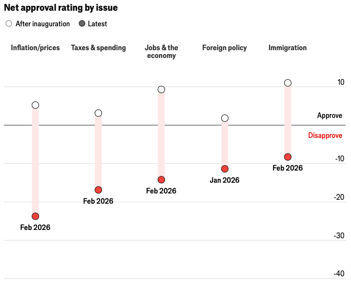 Recent polling data would suggest as much. Not only is Trump under water on every major issue that won him the election…