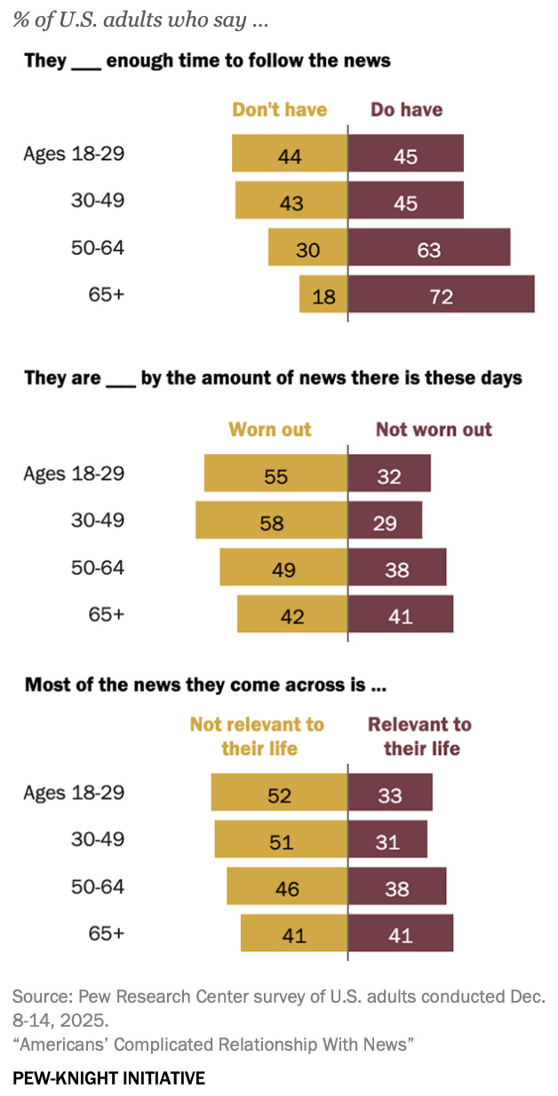 And younger adults in particular are more likely to cite obstacles to following the news: